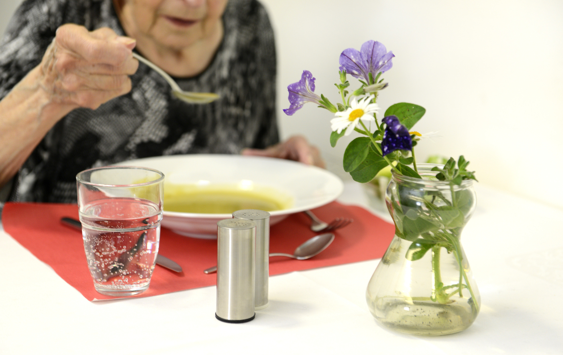 Im Geeren kocht ein motiviertes Küchenteam. Das Essen ist nicht nur abwechslungsreich, bekömmlich und gesund, sondern auch dekorativ angerichtet. Die Bewohnenden haben die Wahl zwischen verschiedenen Menüs und Kostformen. Das Essen wird am Tisch persönlich geschöpft und die Bewohnenden bestimmen, wie viel und was sie essen möchten.