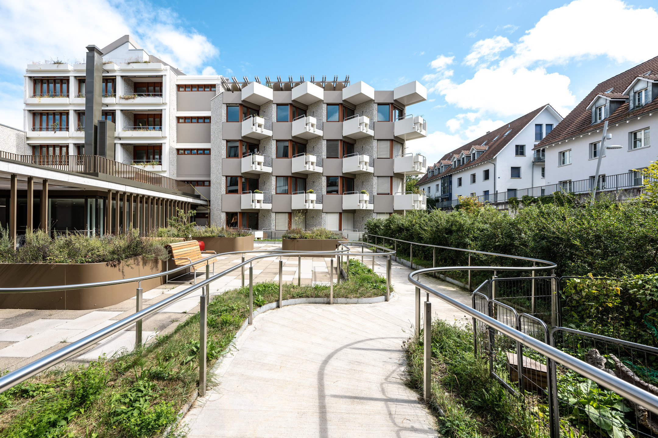 Das Alterszentrum «Im Geeren» liegt nah am Zentrum von Seuzach, mit Einkaufsläden, Post, Apotheke etc., und gleichzeitig auch am Dorfrand. In unmittelbarer Nachbarschaft befindet sich der Chrebsbach, das Schulhaus Rietacker, eine Püntanlage und der Ortsteil „Kirchhügel“ mit der reformierten Kirche. Das Alterszentrum ist eingebettet in eine grosszügige Parkanlage mit Bäumen, Sträuchern, Grünflächen, Teich und Sitzbänken. Auf den gepflegten Spazierwegen rund ums Haus, dem Chrebsbach entlang oder ins Dorf Seuzach kann man sich sicher bewegen und frische Luft tanken.