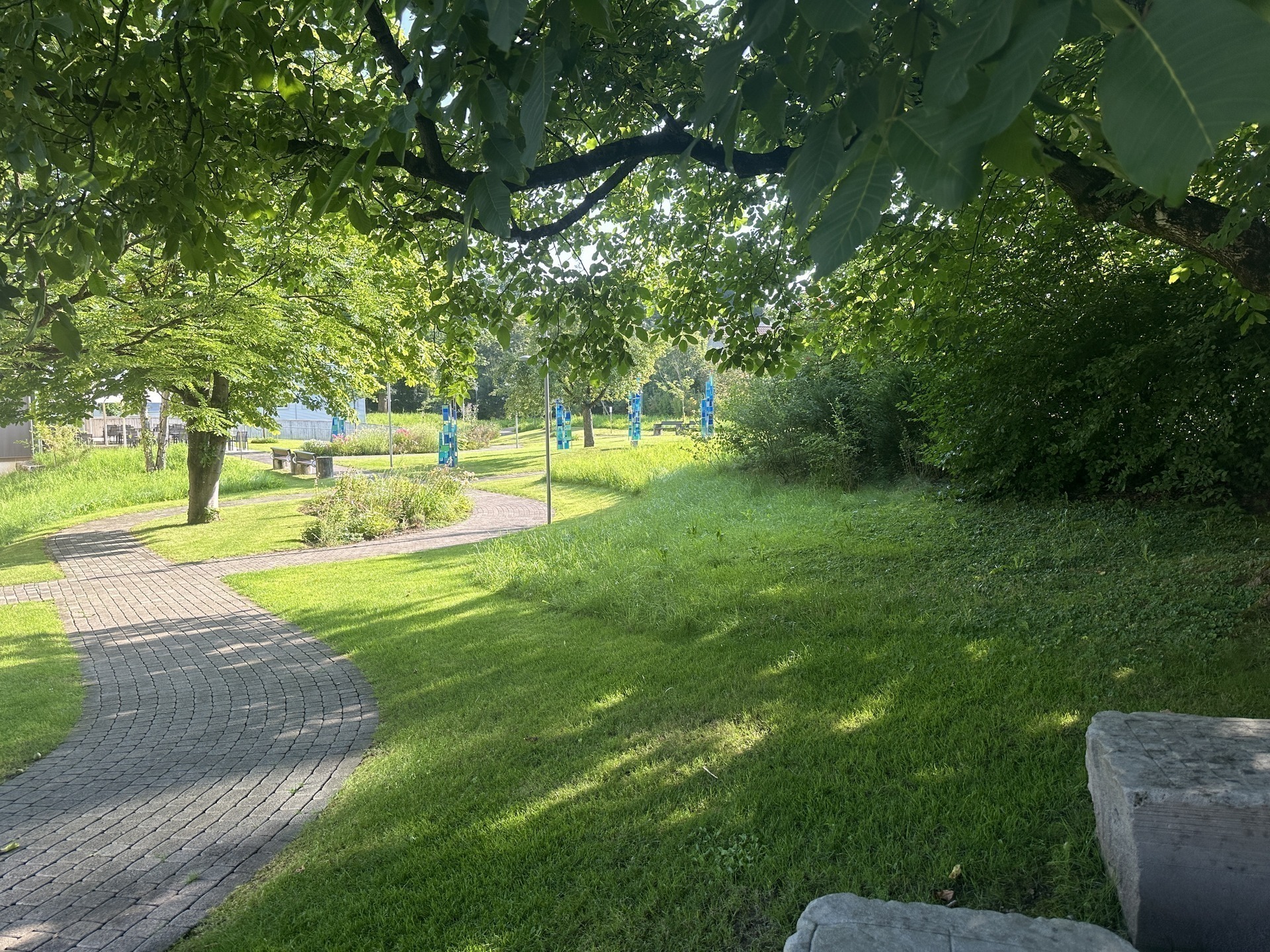 Das Alterszentrum «Im Geeren» liegt nah am Zentrum von Seuzach, mit Einkaufsläden, Post, Apotheke etc., und gleichzeitig auch am Dorfrand. In unmittelbarer Nachbarschaft befindet sich der Chrebsbach, das Schulhaus Rietacker, eine Püntanlage und der Ortsteil „Kirchhügel“ mit der reformierten Kirche. Das Alterszentrum ist eingebettet in eine grosszügige Parkanlage mit Bäumen, Sträuchern, Grünflächen, Teich und Sitzbänken. Auf den gepflegten Spazierwegen rund ums Haus, dem Chrebsbach entlang oder ins Dorf Seuzach kann man sich sicher bewegen und frische Luft tanken.