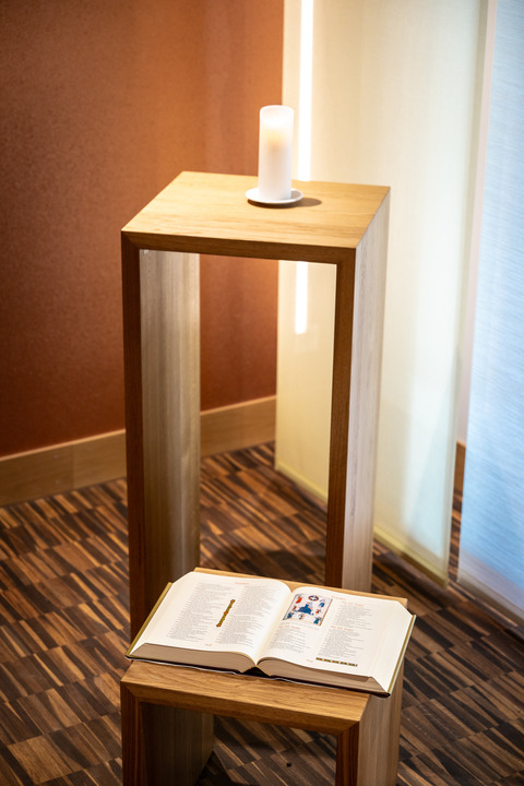 Der Raum der Stille ist ein Ort, um einen Moment der Ruhe zu finden, den Gedanken nachgehen zu können oder ein Gebet zu sprechen.
